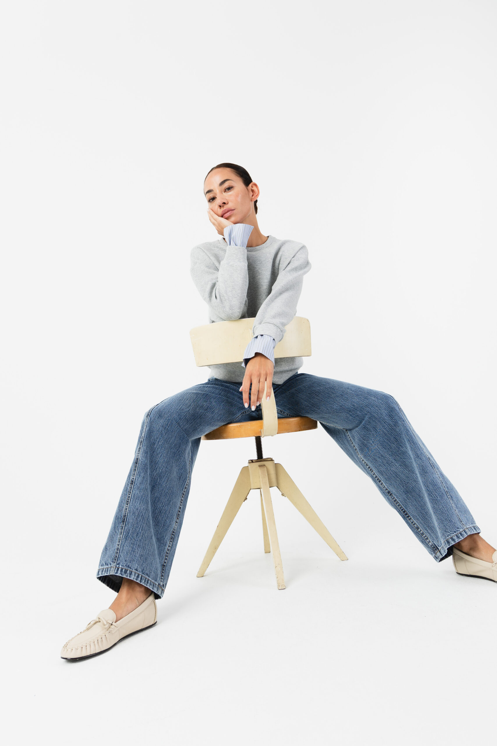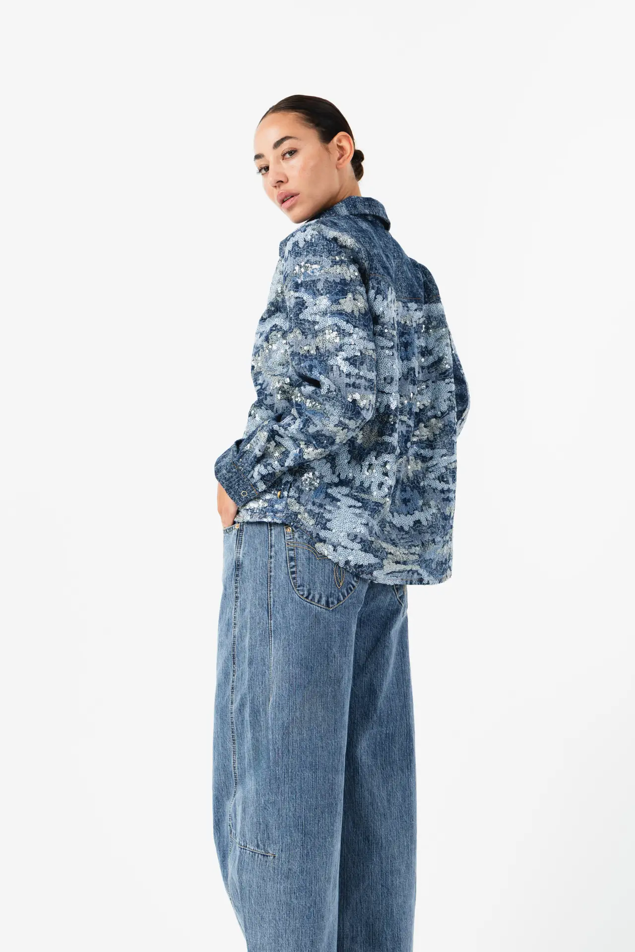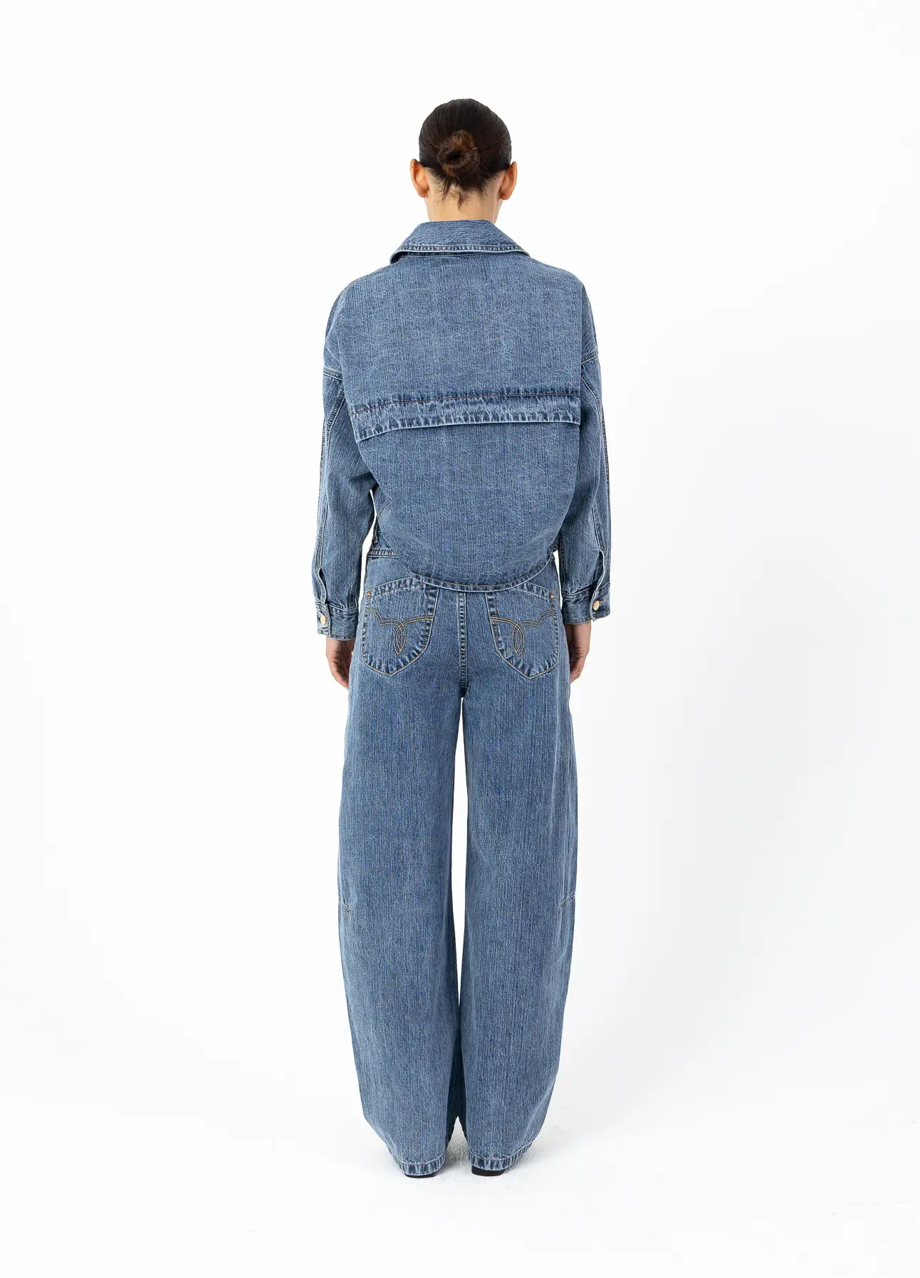 Crafted from exceptionally soft 100% cotton denim, the fabric feels lightweight and comfortable against the skin, making the bold silhouette easy to wear throughout the day. The result is a contemporary wide-leg jean that feels structured at the waist yet relaxed and effortless through the leg.