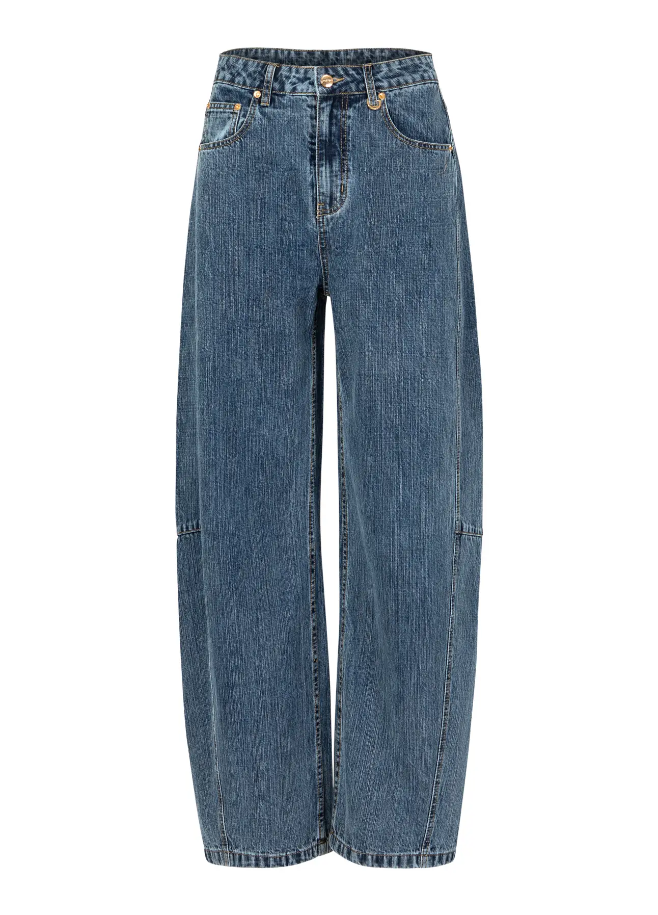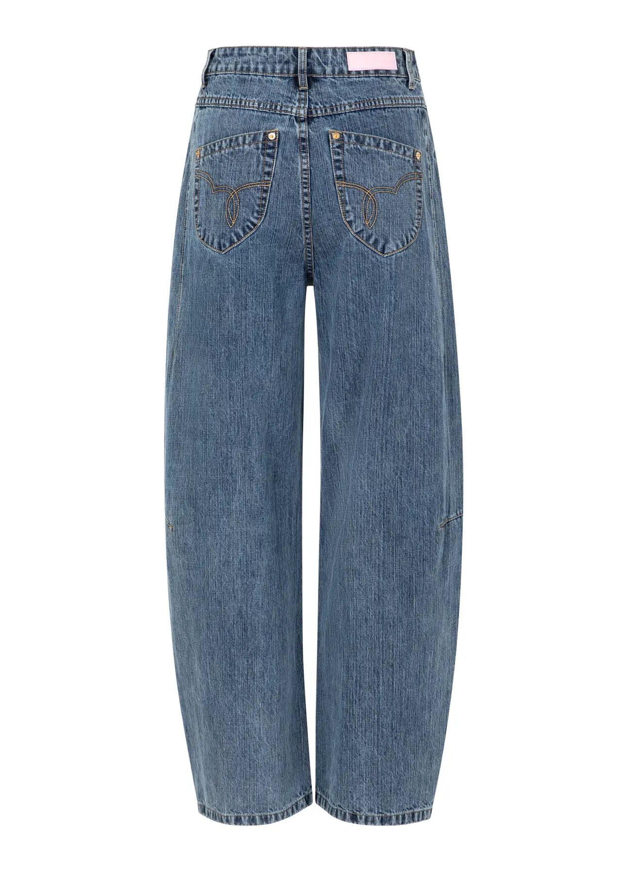 From the hip downward, the leg opens into a generous barrel shape, creating volume and movement without overwhelming the frame. The angled side seams are thoughtfully placed to elongate the leg and subtly contour the silhouette, giving a flattering, architectural effect. On-trend angled back pockets further enhance the shape, adding modern detail while visually lifting and shaping the rear.